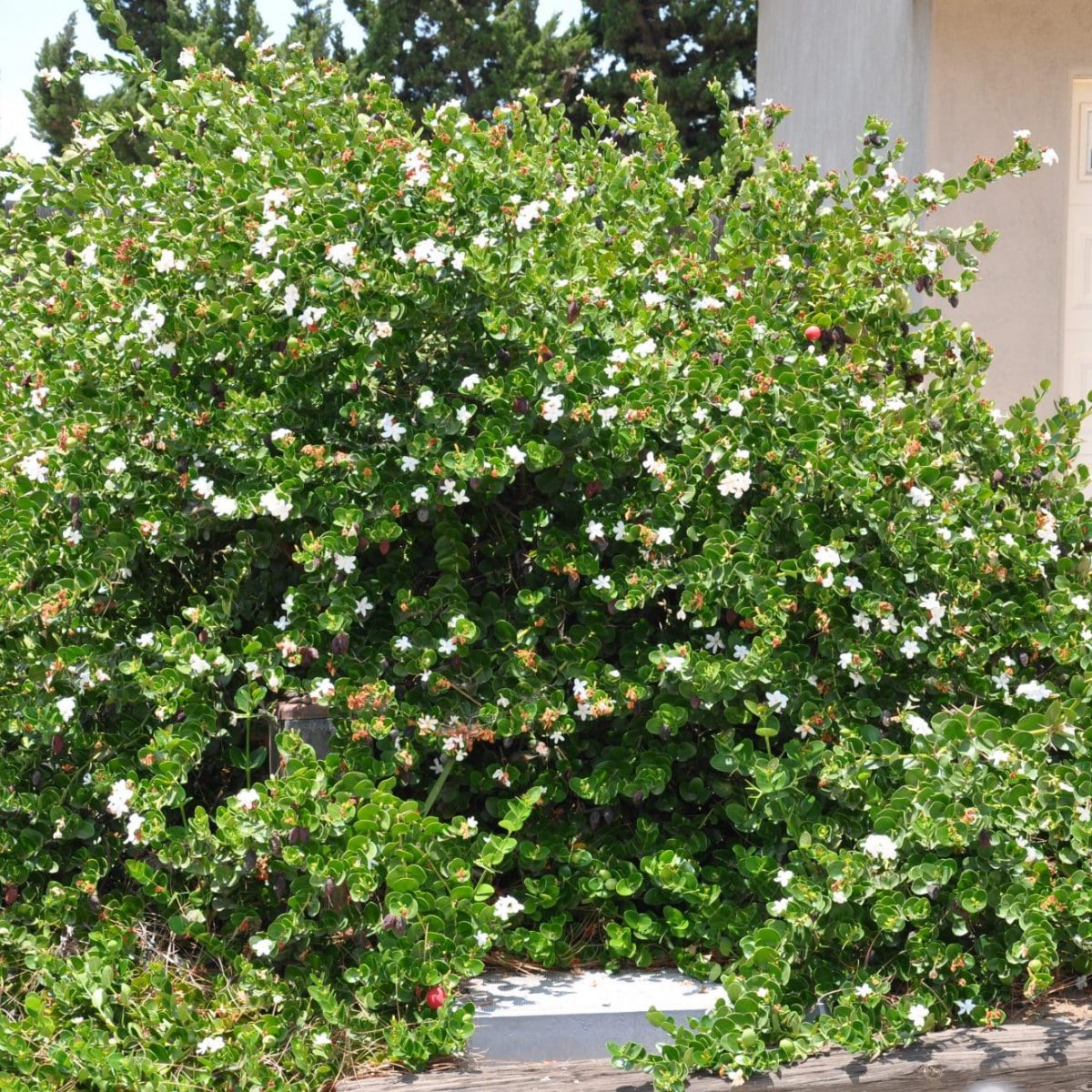 Arbusto originario de Sudáfrica, de hojas verde oscuro brillantes y persistentes, flores blancas similares  a jazmín, e igualmente perfumadas. Frutos rojo brillantes del tamaño de una cereza,  comestibles. Ramas con espinas. En su país de origen crecen en las dunas cerca del mar. Especialmente recomendado para jardines costeros expuestos a salinidad.  A pleno sol y buen drenaje son sus requerimientos. Puede llegar a medir 2 X 2 mts. Introducción del vivero.