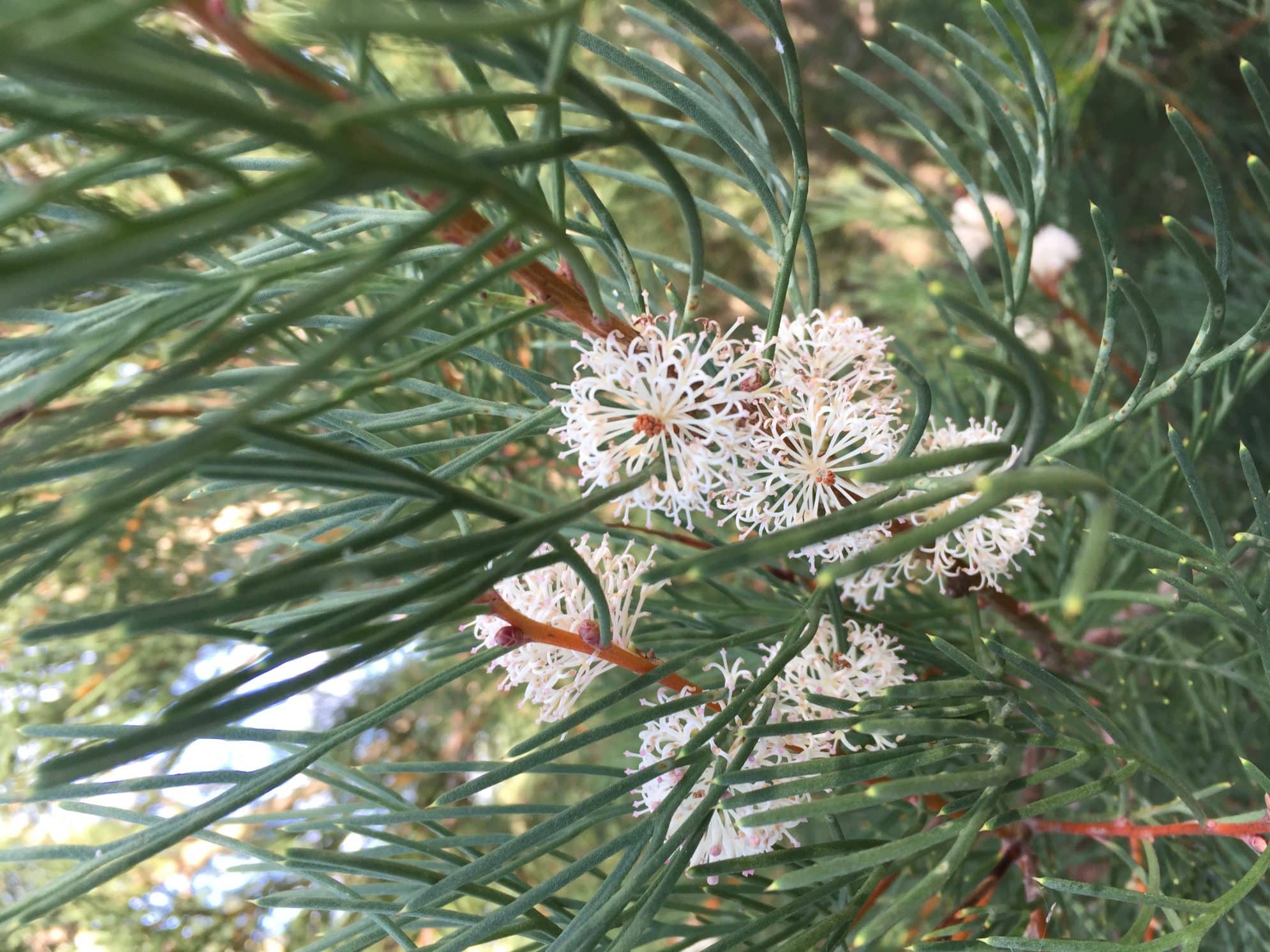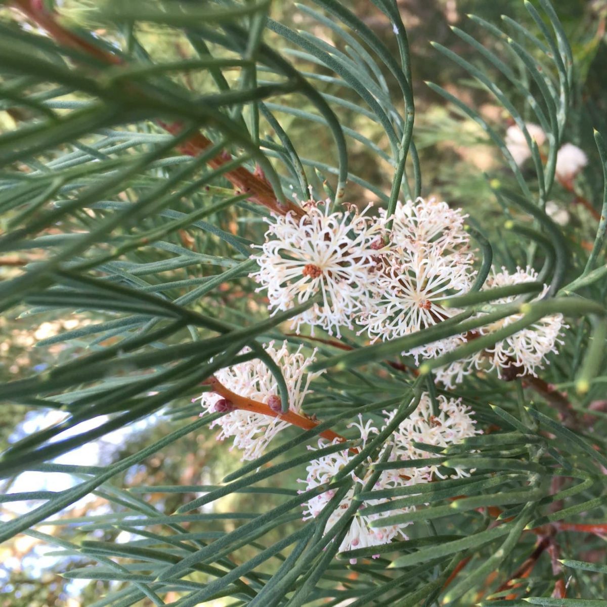 Arbusto originario del oeste de Australia de la familia de las proteáceas, llega a medir 2.5 mts. de altura e igual diámetro. Las rígidas hojas se dividen en agujas duras y picantes. Las flores blancas y fragantes, con olor a miel de abejas nacen en otoño. Apropiado para borde marino y resistente a la sequia una vez establecido. Es un buen cortavientos y se usa de cerco informal, . Introducción del vivero.