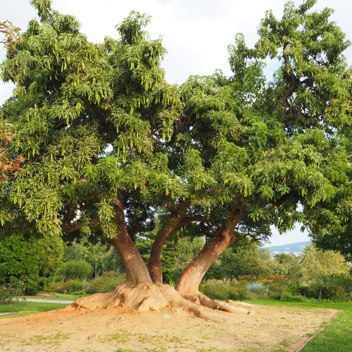 Ombú.  Originario de Argentina. Árbol de hoja caduca en zonas mas frías y perenne en otras. Puede alcanzar hasta 15 mts. de altura. De crecimiento rápido alcanza su máximo desarrollo antes de 15 años. Se usa como árbol aislado por su tamaño. Resiste hasta -10C. pero se hielan sus ramas y rebrota. Buen comportamiento cerca del mar.